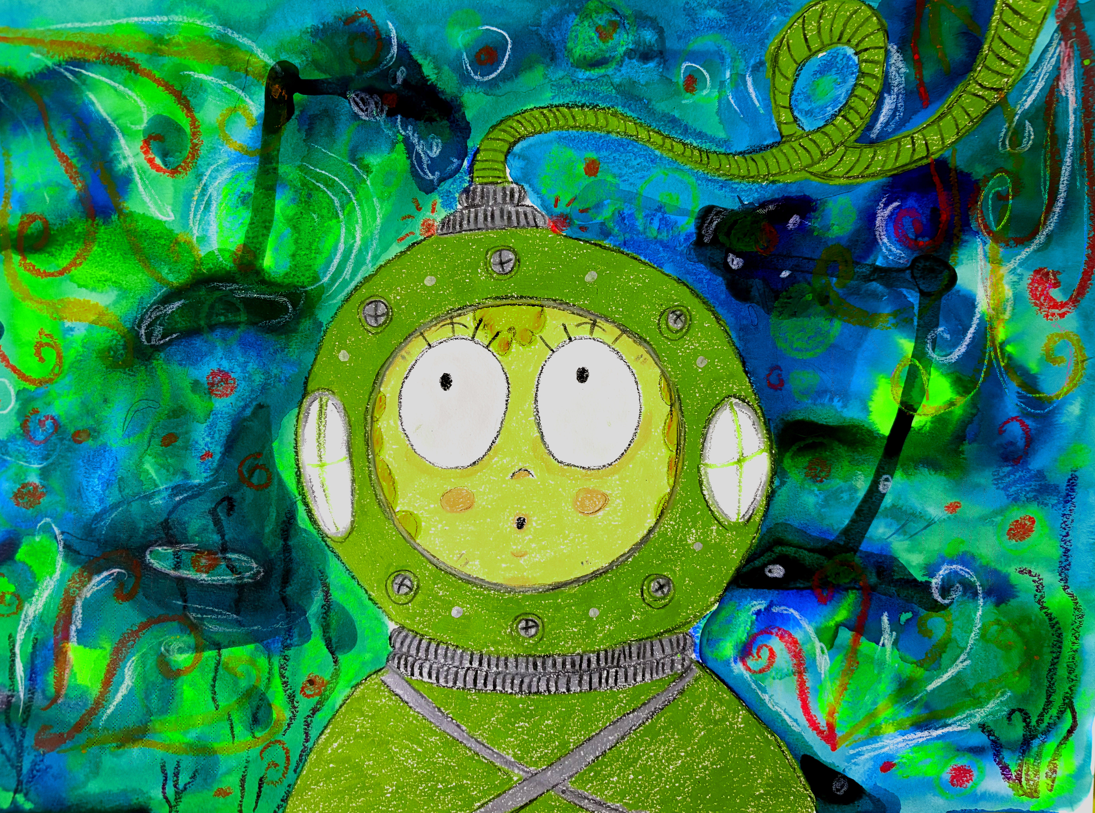 Created using acrylic inks and crayons